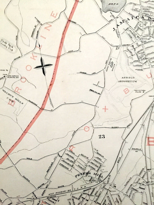 Antique 1891 Boston, Massachusetts Street Map from George H Walker & Co –Suffolk County, Brookline, Newton, Needham, Dedham, Hyde Park, MA