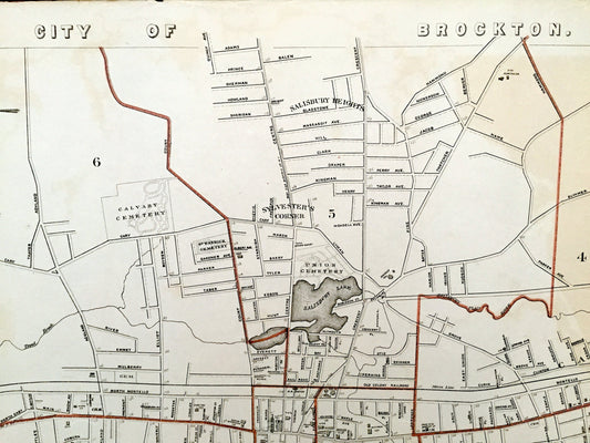 Antique 1891 Brockton, Massachusetts Street Map from George H Walker & Co – Plymouth County, Montello, Menlo Park, West Bridgewater, MA