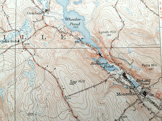 Antique Montville, Connecticut 1939 US Geological Survey Topographic Map – Salem, Waterford, East Lyme, Berlin, New London County, CT
