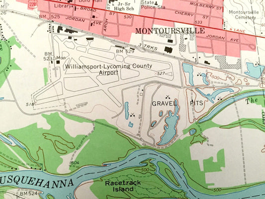 Antique Montoursville South, Pennsylvania 1965 US Geological Survey Topographic Map – Loyalsock, South Williamsport, Armstrong, Brady, Gregg