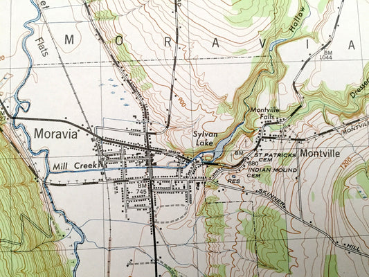 Antique Moravia, New York 1943 US Geological Survey Topographic Map – Venice, Genoa, Locke Montville Fillmore Glen Cayuga Tompkins County NY