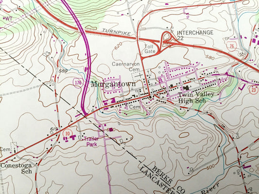 Antique Morgantown, Pennsylvania 1956 US Geological Survey Topographic Map – Knauers, Alleghenyville, Beckersville, Churchtown, Berks Co
