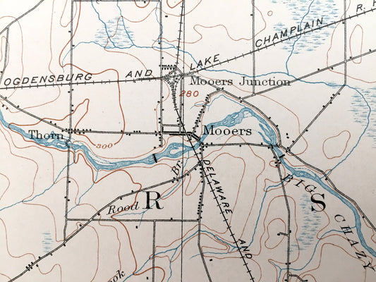 Antique Mooers, New York 1899 US Geological Survey Topographic Map – Adirondacks, Chazy, Champlain, Altona, Beekmantown, Clinton County, NY