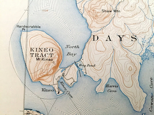 Antique Moosehead Lake, Maine 1922 US Geological Survey Topographic Map – Greenville, Big Squaw, Mt Kineo, Somerset, Piscataquis County, ME