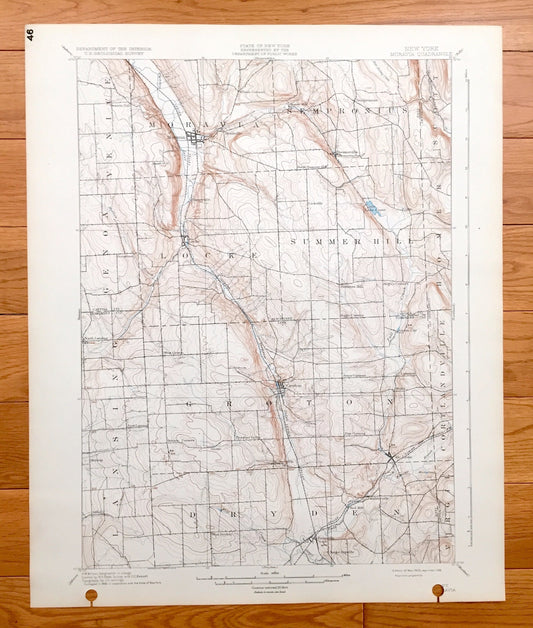Antique Moravia, New York 1902 US Geological Survey Topographic Map - Sempronius, Locke, Groton, Freeville, Dryden, Lansing, Genoa Venice NY