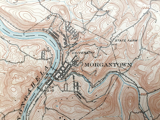 Antique Morgantown, West Virginia 1902 US Geological Survey Topographic Map – Monongalia County, Morgan, Cass, Dunkard, Point Marion, WVU