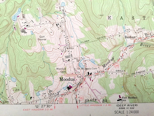 Antique Moodus, Connecticut 1967 US Geological Survey Topographic Map – Hartford, New London, Middlesex County, Marlborough, Colchester, CT