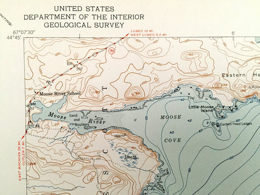 Antique Moose River, Maine 1951 US Geological Survey Topographic Map – Somerset County, Trescott, Cutler, Grand Manan Channel, ME