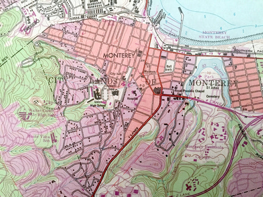 Antique Monterey, California 1947 US Geological Survey Topographic Map – Carmel By The Sea, Bay, Pacific Grove, Pinos, Pebble Beach Golf, CA