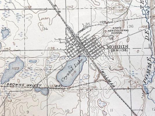 Antique Morris, Minnesota 1917 US Geological Survey Topographic Map – Darren, Hodges, Framnas, Rendsville, Pope County, Stevens County, MN