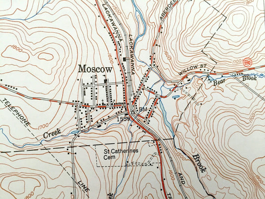 Antique Moscow, Pennsylvania 1949 US Geological Survey Topographic Map – Lackawanna County, Roaring Brook, Covington, Spring, Elmhurst, PA