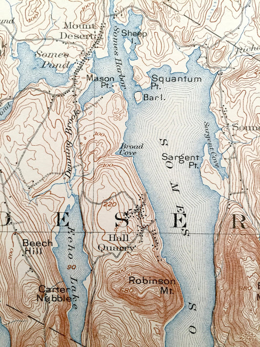 Antique Mount Desert, Maine 1904 US Geological Survey Topographic Map – Tremont, Eden, Blue Hill, Acadia Park, Southwest, Bar Harbor, ME Mt