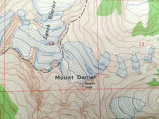 Antique Mount Daniel, Washington 1965 US Geological Survey Topographic Map – King, Kittatas County, Wenatchee, Snoqualmie National Forest WA
