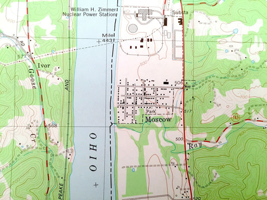 Antique Moscow, Ohio & Willow Grove, Kentucky 1981 US Geological Survey Topographic Map – Washington, Johnsville, Carntown, Bradford, OH KY