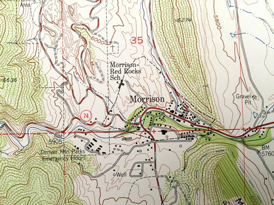 Antique Morrison, Colorado 1957 US Geological Survey Topographic Map – Red Rocks, Green Mountain, Golden, Idledale, Pleasant View, Edgemont