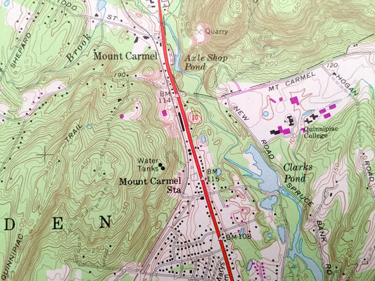 Antique Mount Carmel, Connecticut 1967 US Geological Survey Topographic Map – New Haven County, Prospect, Hamden, Bethany, Woodbridge, CT