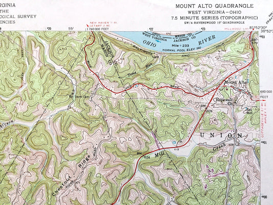 Antique Mount Alto, West Virginia 1958 US Geological Survey Topographic Map – Arbuckle, Leon, Rollins, Harvey Chapel, Union, Baden, WV OH