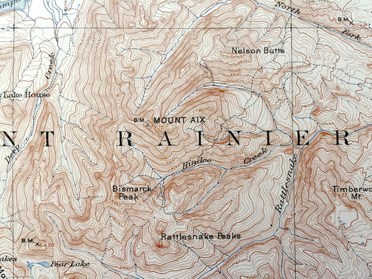 Antique Mount Aix, Washington 1904 US Geological Survey Topographic Map – Yakima County, Cascade Range, Bumping, Goat Peak, Mt Rainier, WA
