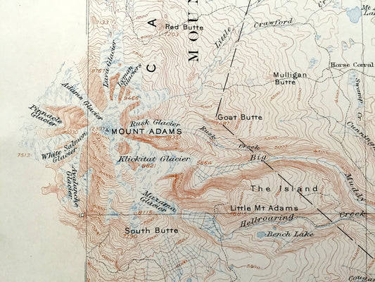 Antique Mount Adams, Washington 1907 US Geological Survey Topographic Map – Yakima, Klickitat County, Mt Rainier National Park, Lewis, WA