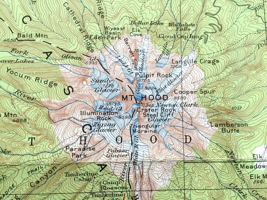 Antique Mount Hood, Oregon 1924 US Geological Survey Topographic Map – Multnomah, Clackamas, Wasco, Zigzag River, Cascade Range, OR, Mt