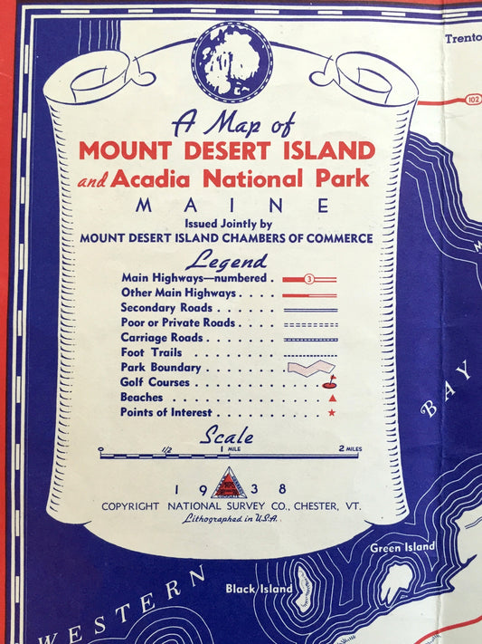 Antique Mount Desert Island, Maine 1938 US Geological Survey Topographic Map – Acadia National Park, Hancock County, Bar Harbor, Tremont, ME
