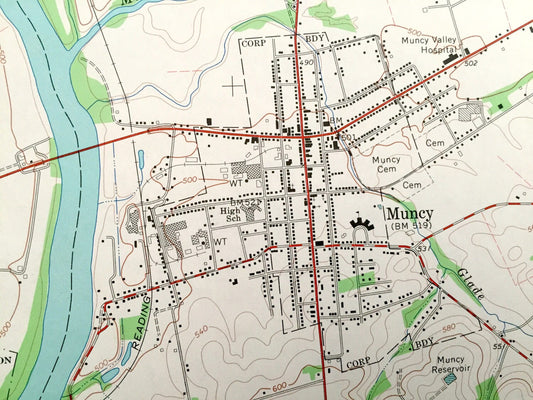 Antique Muncy, Pennsylvania 1965 US Geological Survey Topographic Map – Fairfield, Muncy Creek, Lewis, Delaware, Clinton, Montgomery
