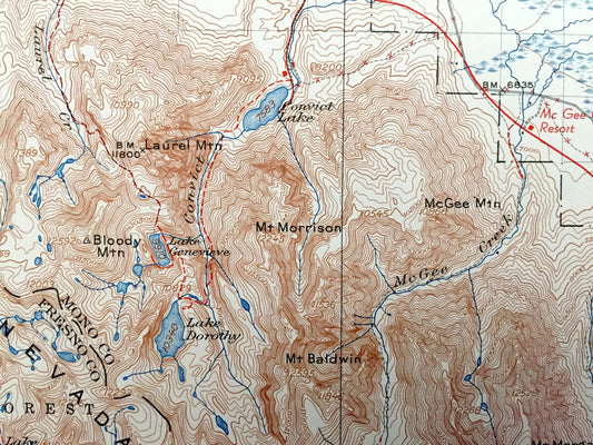 Antique Mt Morrison, California 1915 US Geological Survey Topographic Map – Mono, Fresno County, Inyo National Forest, Lake Crowley, CA