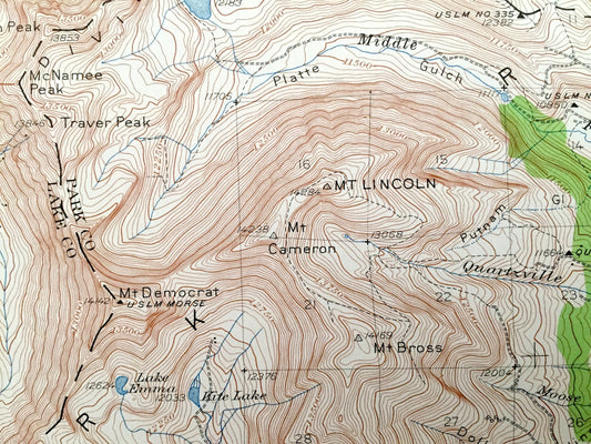 Antique Mt Lincoln, Colorado 1938 US Geological Survey Topographic Map – Breckenridge, Copper Mountain, Climax, Kokomo, Alma, Summit Lake CO