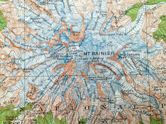 Antique Mt Rainier National Park, Washington 1924 US Geological Survey Topographic Map – Pierce County, Cascade Range, Gifford Pinchot Mount
