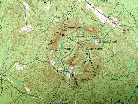 Antique Mt Pawtuckaway, New Hampshire, 1957 US Geological Survey Topographic Map – Nottingham, Barrington, Northwood, Raymond, Epping Lee NH