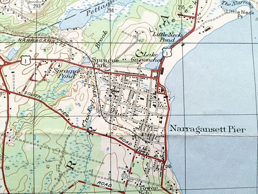 Antique Narragansett Pier, Rhode Island 1947 US Geological Survey Topographic Map – Washington County, Newport, Kingston, Jamestown, Bay, RI