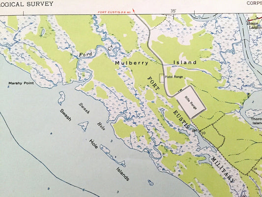 Antique Mulberry Island, Virginia 1950 US Geological Survey Topographic Map – Warwick, Isle of Wight County, James River, Fort Eustis, VA