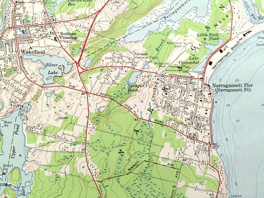 Antique Narragansett Pier, Rhode Island 1957 US Geological Survey Topographic Map – Washington County, Newport, Kingston, Jamestown, Bay, RI