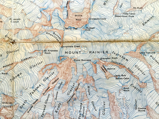 Antique Mt Rainier National Park 1955 US Geological Survey Topographic Map – Pierce County, Cascade Range, Emerald Ridge, Winthrop Mount, WA