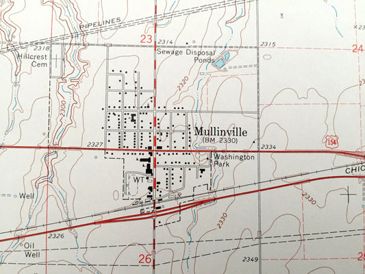 Antique Mullinville, Kansas 1969 US Geological Survey Topographic Map – Martin, Garfield, Westland, Highland, Joy, Kiowa County, Cossell