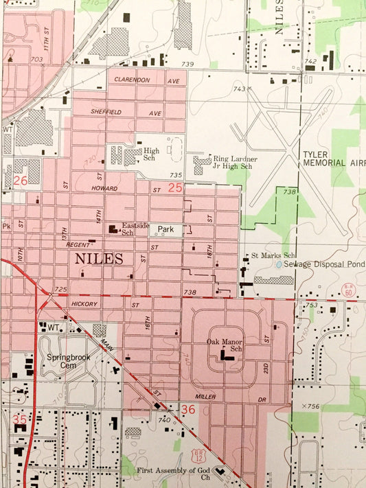 Antique Niles, Indiana 1981 US Geological Survey Topographic Map – Cass, Berrien County, Howard, Milton, Barron Lake, & Clay, Harris, IN