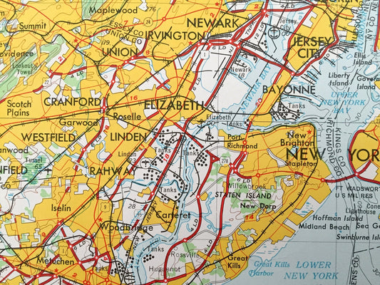 Antique Newark, New Jersey 1944 US Geological Survey Topographic Map – Elizabeth, Hoboken, Paterson, Trenton, Asbury Park, Philadelphia