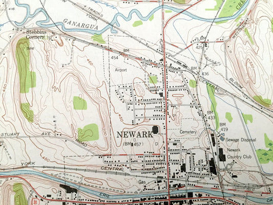 Antique Newark, New York 1952 US Geological Survey Topographic Map - Wayne, Ontario County, Arcadia, Lyons, Phelps, Fairville, Mud Mills, NY