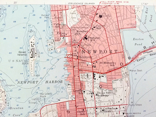 Antique Newport, Rhode Island 1957 US Geological Survey Topographic Map – Narraganset Bay, Jamestown, Middletown, Conanicut Island County RI