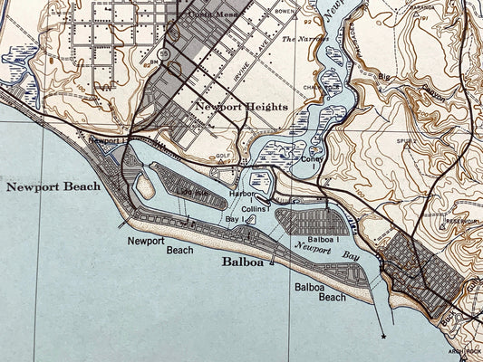 Antique Newport Beach, California 1942 US Geological Survey Topographic Map – Santa Ana, Huntington, Corona del Mar, Orange County, CA