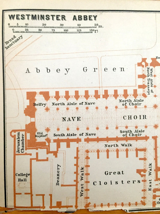 Antique 1902 Westminster Abbey Architectural Plan from Baedekers Atlas of London – St Margaret's Church, Chapel, Great Britain, England, UK