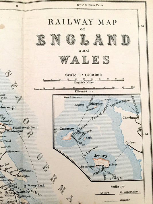 Antique 1902 England & Wales Map from Baedekers Atlas of London – Ireland, Brighton, Dover, Manchester, Leeds, Birmingham, Great Britain, UK