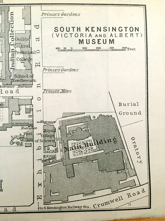 Antique 1902 Victoria & Albert Museum Architectural Plan from Baedekers Atlas of London – South Kensington, Great Britain, England, UK