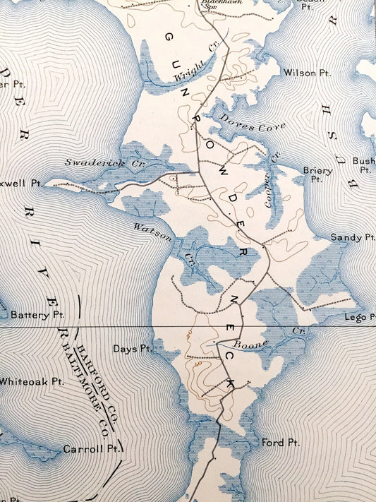 Antique 1901 Aberdeen Proving Ground, Maryland US Geological Survey Map – Gunpowder Falls, Chesapeake Bay, Baltimore & Harford County, MD