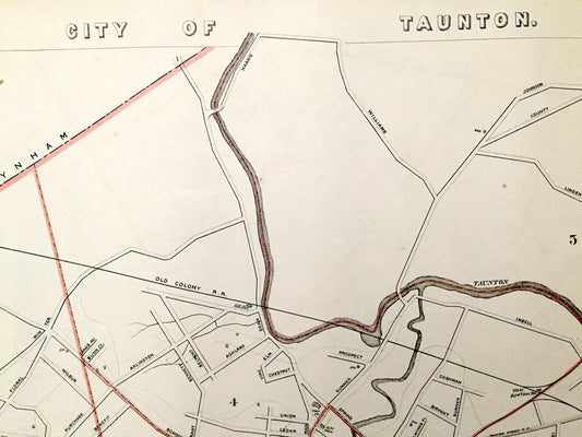 Antique 1891 Taunton, Massachusetts Street Map from George H Walker & Co – Bristol County, Taunton River, Mill River, Berkley, Raynham, MA