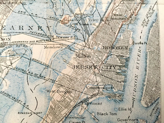 Antique 1902 New Jersey, New York & Pennsylvania US Geological Survey Topographic Map – Hudson River Valley, Montclair, Upstate, Passaic, NJ