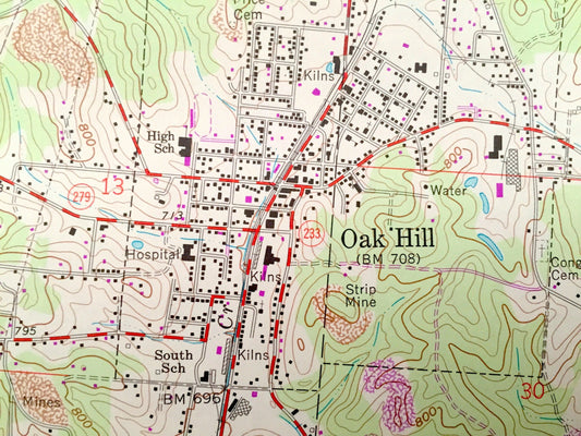 Antique Oak Hill, Ohio 1961 US Geological Survey Topographic Map – Jackson County, Franklin, Jefferson, Madison, Bloomfield, Pyro, Lake, OH