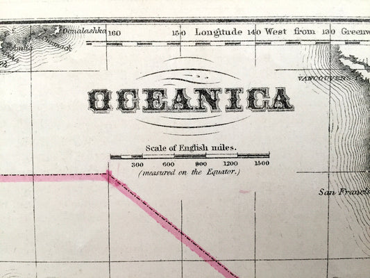Antique Oceania 1866 Rand McNally Map – Australia, New Zealand, Tasmania, Polynesia, Philippines, Hawaii, Borneo, Sumatra, Java, Malaysia
