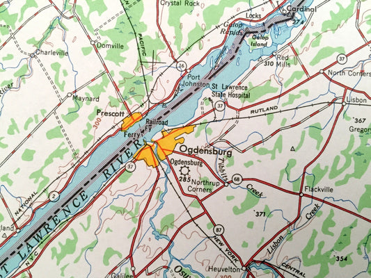 Antique Ogdensburg, New York, 1961 US Geological Survey Topographic Map – Massena, Malone, Potsdam, Canton, Gouverneur, Adirondack Mountains
