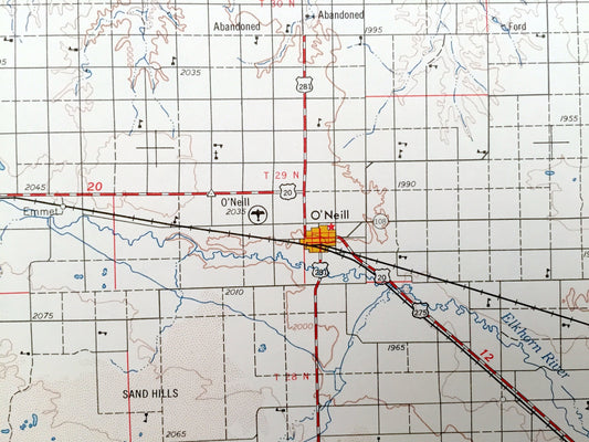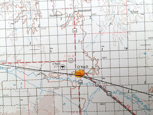Antique O'Neill, Nebraska 1969 US Geological Survey Topographic Map – Atkinson, Bassett, Ainsworth, Stuart, Neligh Orchard Missouri River NE